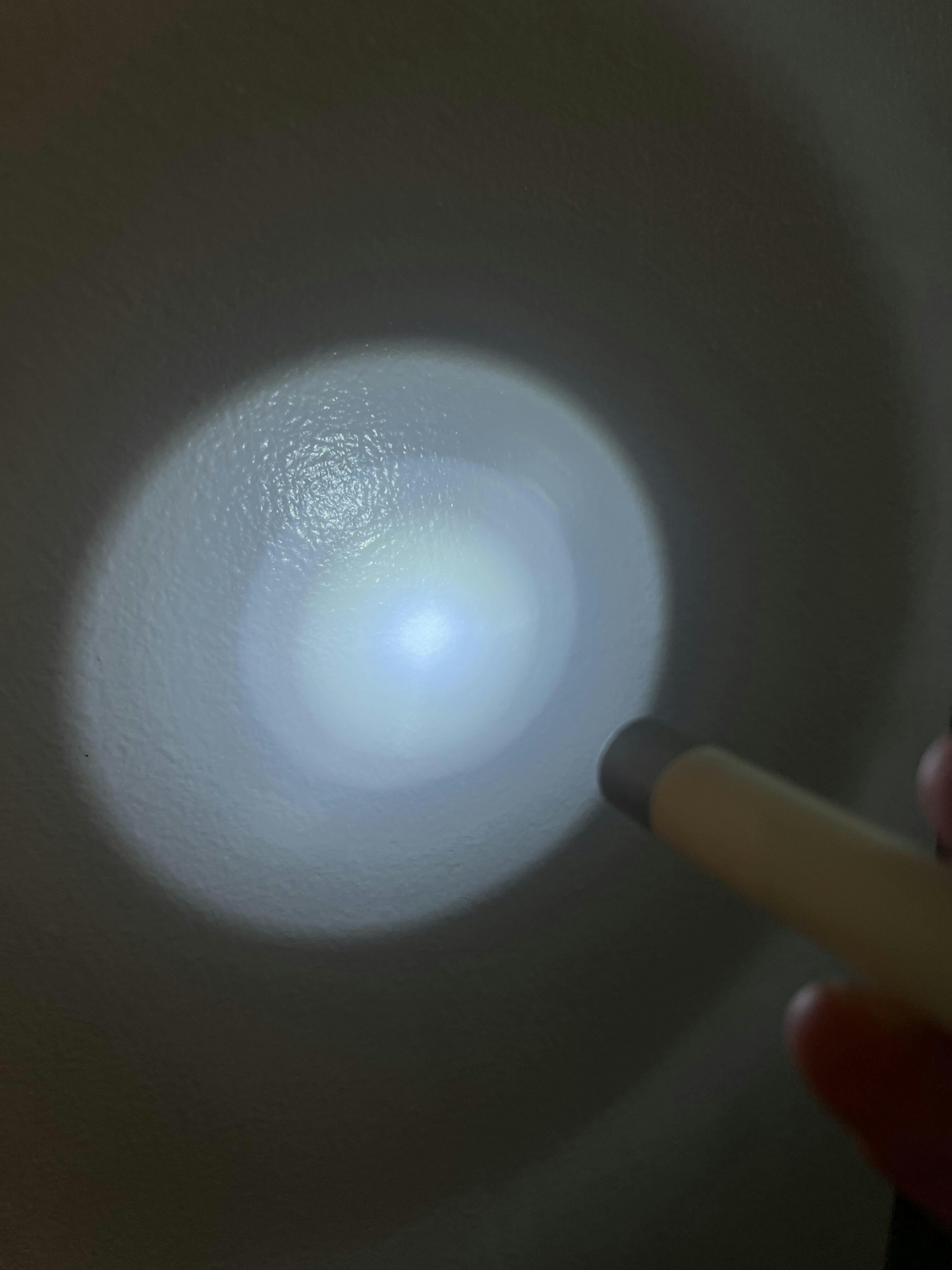 Produkten uppger att den har en pupillstorleksmarkering från 2–9 mm, men den har ingen markering alls. Lampan är helt vit.