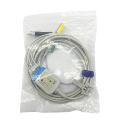 Kabeln används när övningselektroderna inte är integrerade i träningshjärtstartaren utan ansluts separat. Det gör det möjligt att byta elektroder mellan deltagare utan att behöva koppla ur hela kabeln från träningsenheten — en fördel vid kurser med flera deltagare där varje person ska öva med egna elektroder. Kabeln har 3-punktsanslutning enligt äldre standard och passar endast HeartSave AED-trainer, inte HeartSave 6 eller andra Primedic-modeller.