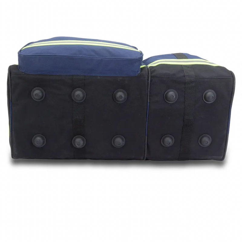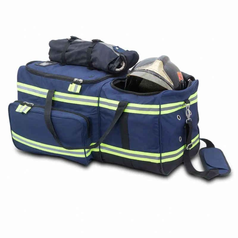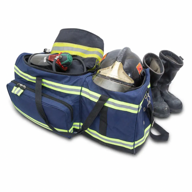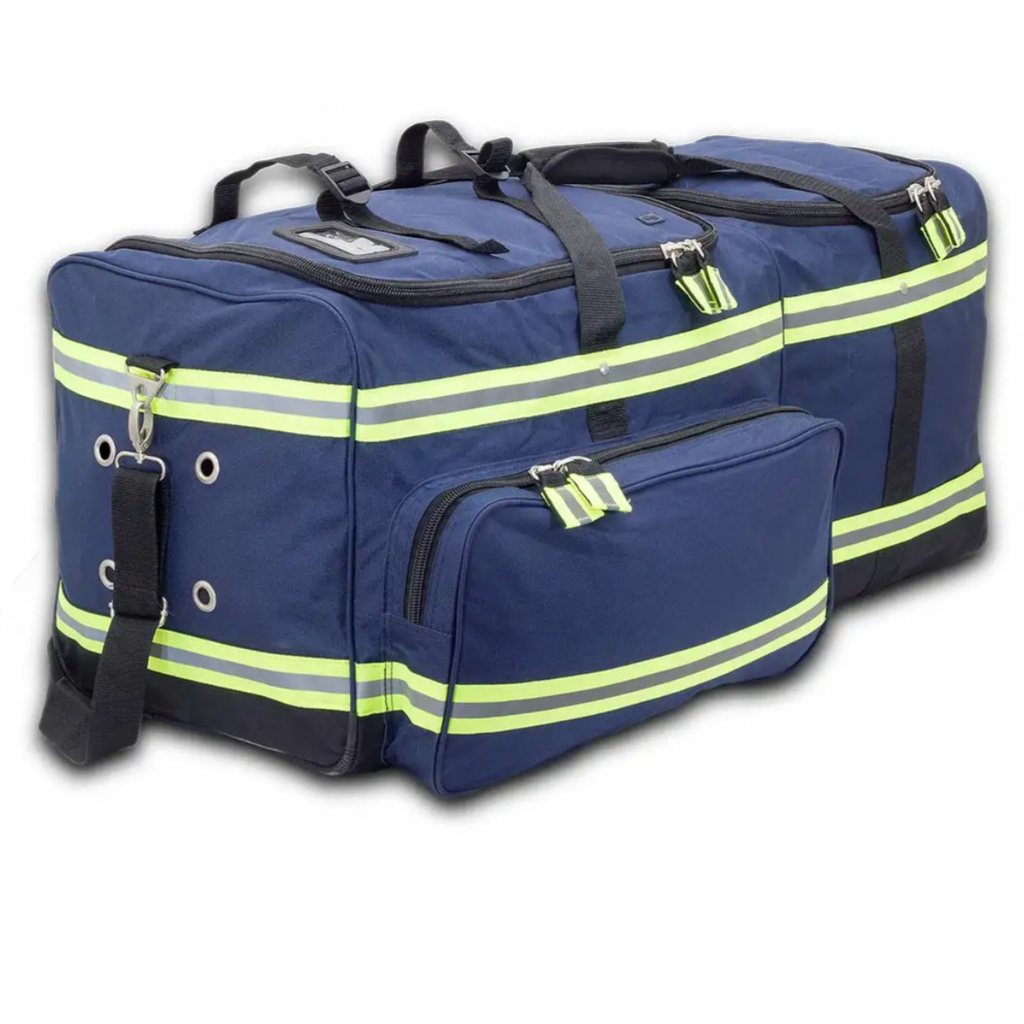 Hela väskan har högreflekterande band och även reflekterande handtag på blixtlåsen för bästa synlighet i skiftande ljusförhållanden. Stuvfack med metallklädda ventilationshål. Frontficka med stor kapacitet. Två invändiga fickor med blixtlås. Botten är försedd med en styv platta som kan avlägsnas. Väskan är sektionsindelad på bästa sätt för kläder, hjälm, handskar, skor, ficklampa osv och dessutom försedd med flera bärhandtag och axelrem för flexibilitet vid förflyttning. Botten är utvändigt klädd med vattentätt och tåligt ytskikt och gummifötter som gör att den tål att placeras på både blött och smutsigt underlag.