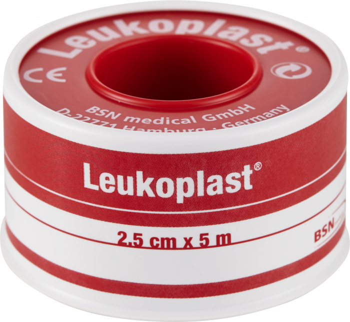 Leukoplast är den klassiska tejpen med många användningsområden. Den har hög hållfasthet, hög hållfasthet med god vidhäftning. Kan bäras under lång tid med mycket god andningsförmåga. Tejpen används för fixering på normal hud och vid behov av extra fixering. Det går även att använda tejpen för fixering av stomibandage samt förebyggande mot skoskav.