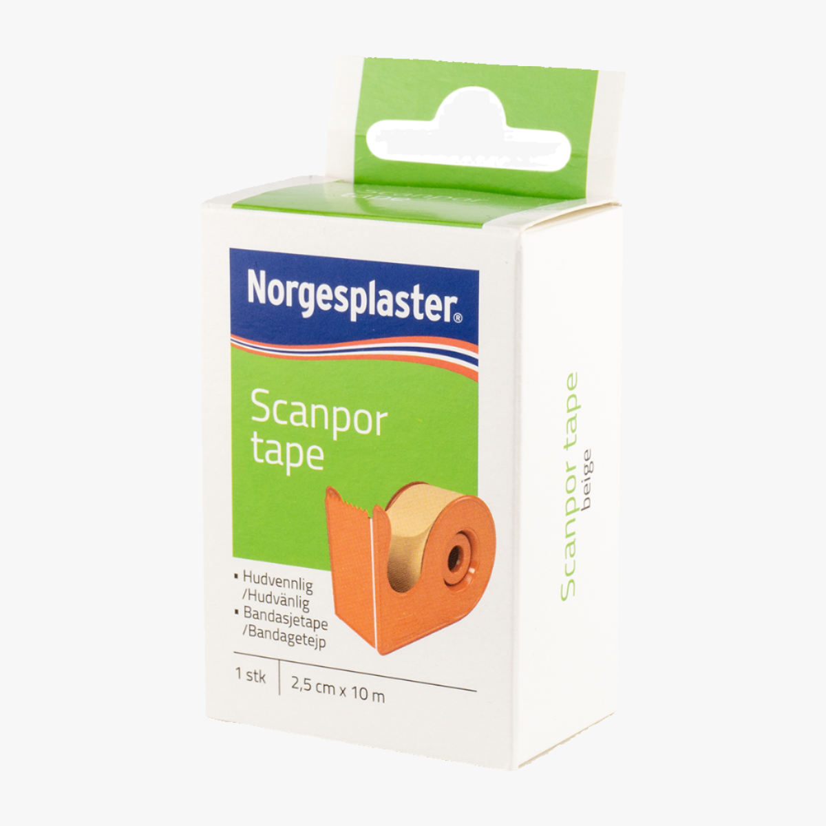 Scanpor är en elastisk tejp med god vidhäftningsförmåga. Den kan lossas och sättas fast igen. Lämpar sig väl för att fästa kompresser.